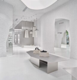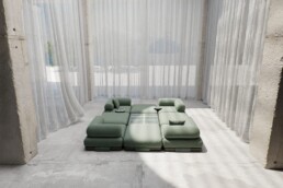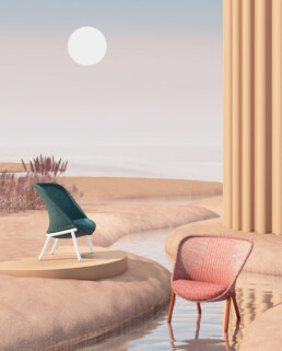 Otra figura destacada es Sabine Marcelis, diseñadora conocida por sus piezas de mobiliario, objetos e instalaciones que exploran la relación entre luz, color y materialidad. Su obra se sitúa en un territorio intermedio entre arte y diseño, investigando el potencial expresivo de materiales como la resina, el vidrio o la piedra. A través de una estética depurada y altamente experimental, Marcelis ha desarrollado un lenguaje propio que pone el acento en la experiencia sensorial del objeto y del espacio.