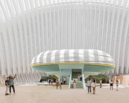 Por último, y aunque cambiamos de escala, el Ágora de la Ciudad de las Artes y las Ciencias de Santiago Calatrava, convertida hoy en CaixaForum con un diseño de Enric Ruiz-Geli, es un espacio de gran atractivo en el que el ritmo de las costillas blancas de metal que conforman su envolvente, así como la propia forma de las mismas, dan lugar a una altura libre que alcanza los 70 metros en toda la parte central. Un espacio transformado en centro cultural que impresiona por su tamaño.