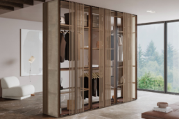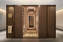 Uno de los rasgos más interesantes de SteLo es su capacidad de adaptabilidad. No son piezas aisladas sino módulos que pueden combinarse y organizarse de distintas maneras: como armarios, como vestidores abiertos o cerrados, con distintos niveles, materiales y acabados. Rifé juega con la armonía de proporciones para lograr impacto visual, pero también serenidad, una estética que acompaña sin imponerse. Además, el diseño refleja una sensibilidad tanto hacia la dimensión funcional como hacia la emocional: el usuario no solo lo utiliza, sino que lo habita, lo percibe, lo siente.