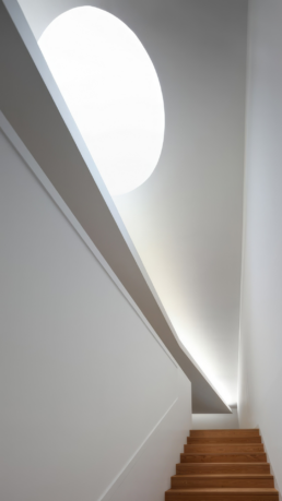 El recorrido interior es, sin duda, el corazón del proyecto. Rampas, escaleras y pasillos se encadenan creando una experiencia fluida, donde la arquitectura guía el movimiento sin necesidad de señalética explícita. La luz natural entra de forma controlada, marcando ritmos y pausas, y acompañando al visitante a lo largo del recorrido. Aquí, Siza vuelve a demostrar su maestría en el uso de la luz como material arquitectónico, capaz de transformar un espacio sin recurrir a artificios.