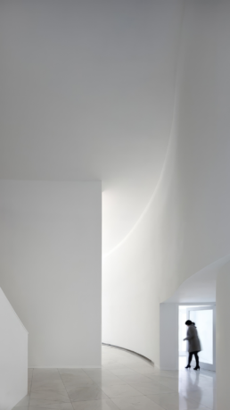 Desde el exterior, el museo se presenta como una forma blanca, continua y aparentemente abstracta, muy reconocible dentro del lenguaje de Siza. No hay una fachada principal evidente ni un gesto dominante que se imponga al visitante. En su lugar, el edificio se apoya en curvas suaves, quiebros y cambios de escala que dialogan con el entorno urbano de manera contenida. Esa ambigüedad inicial es deliberada: el proyecto no busca ser comprendido de inmediato, sino invitarnos a entrar y descubrirlo desde dentro.