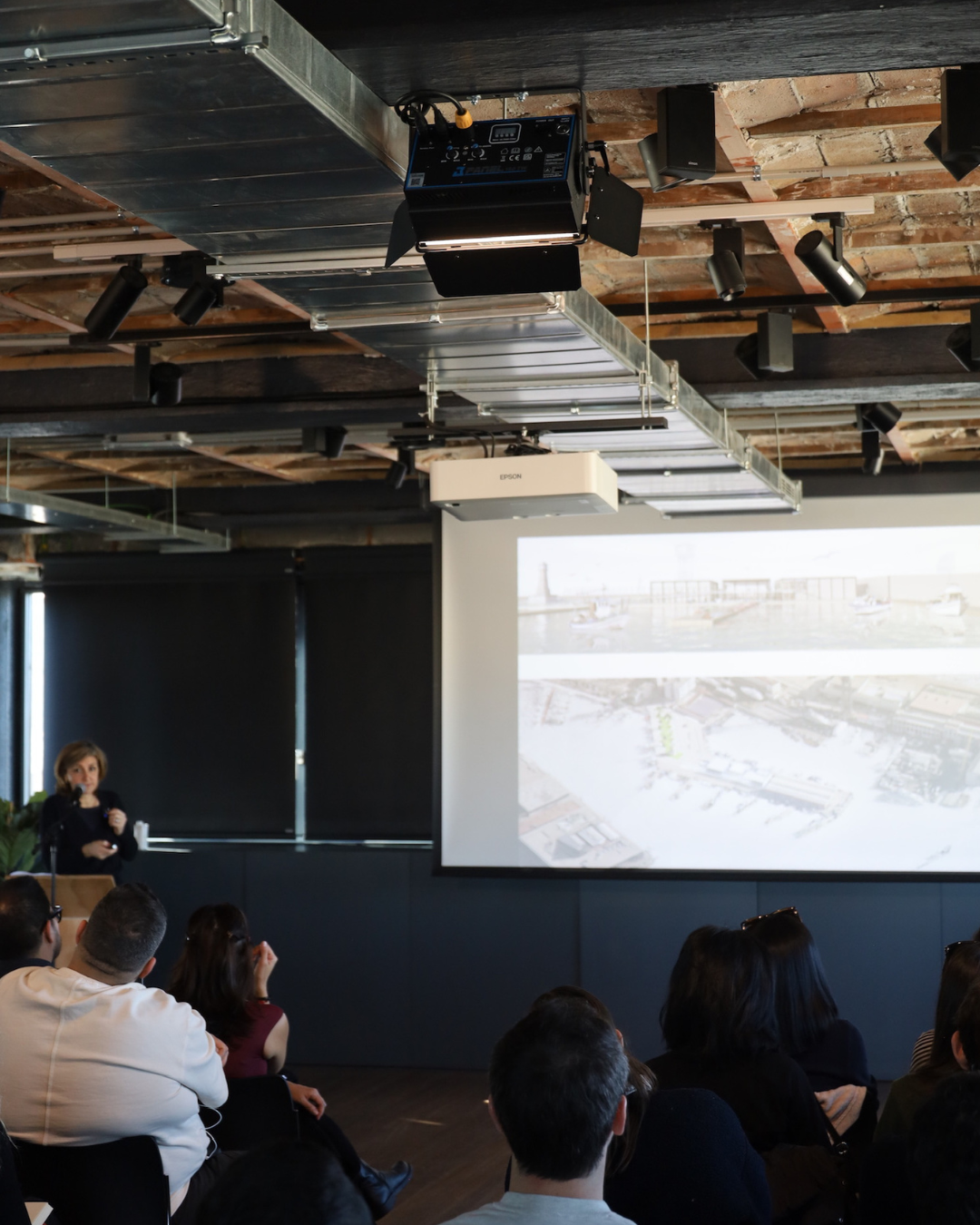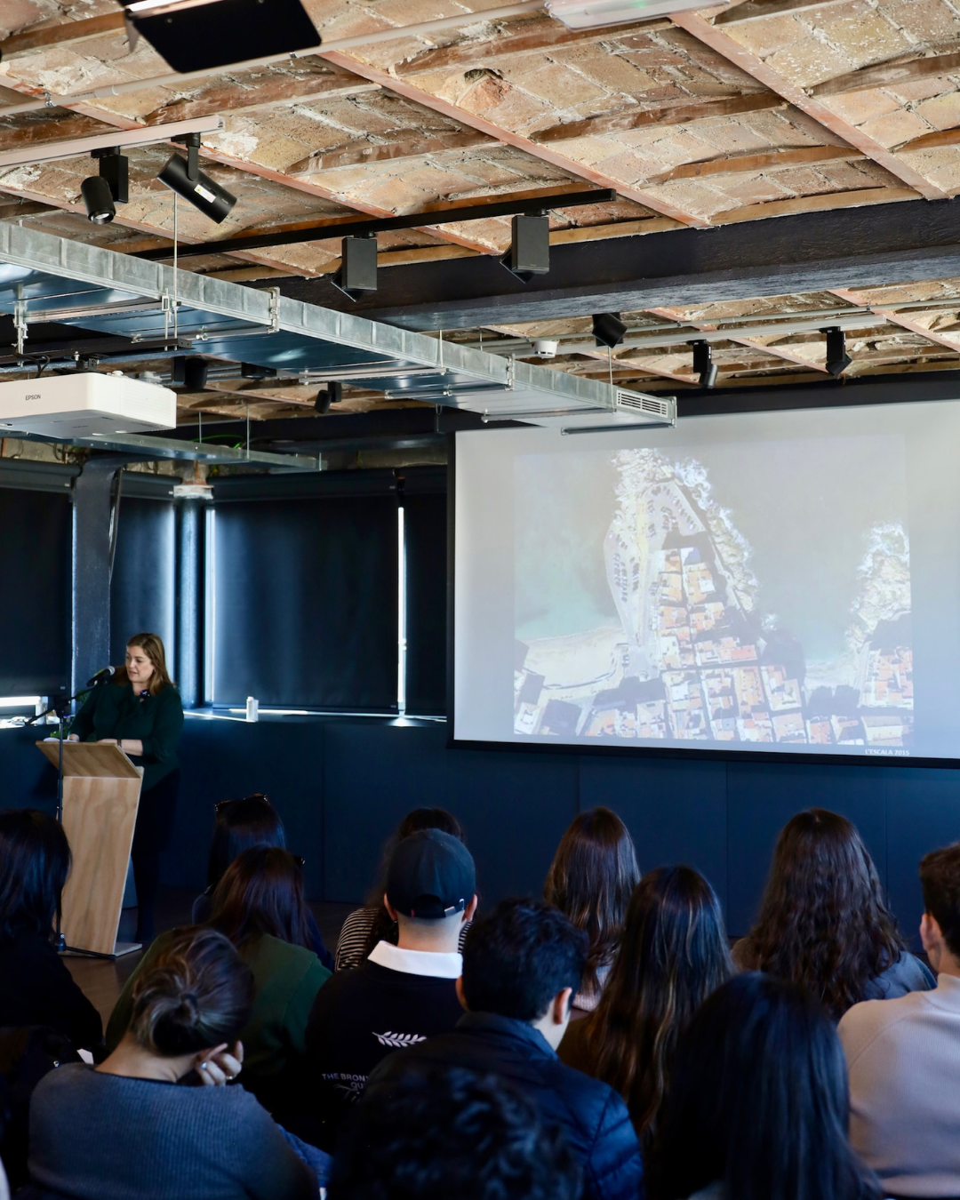 La ponencia ha tenido lugar en el auditorio situado en la planta 8 del Colegio de Arquitectos de Cataluña, un espacio proyectado por el estudio Peris y Toral Arquitectes, que ha servido como marco para una sesión que al finalizar ha dado pie a una ronda de preguntas por parte de los alumnos.
