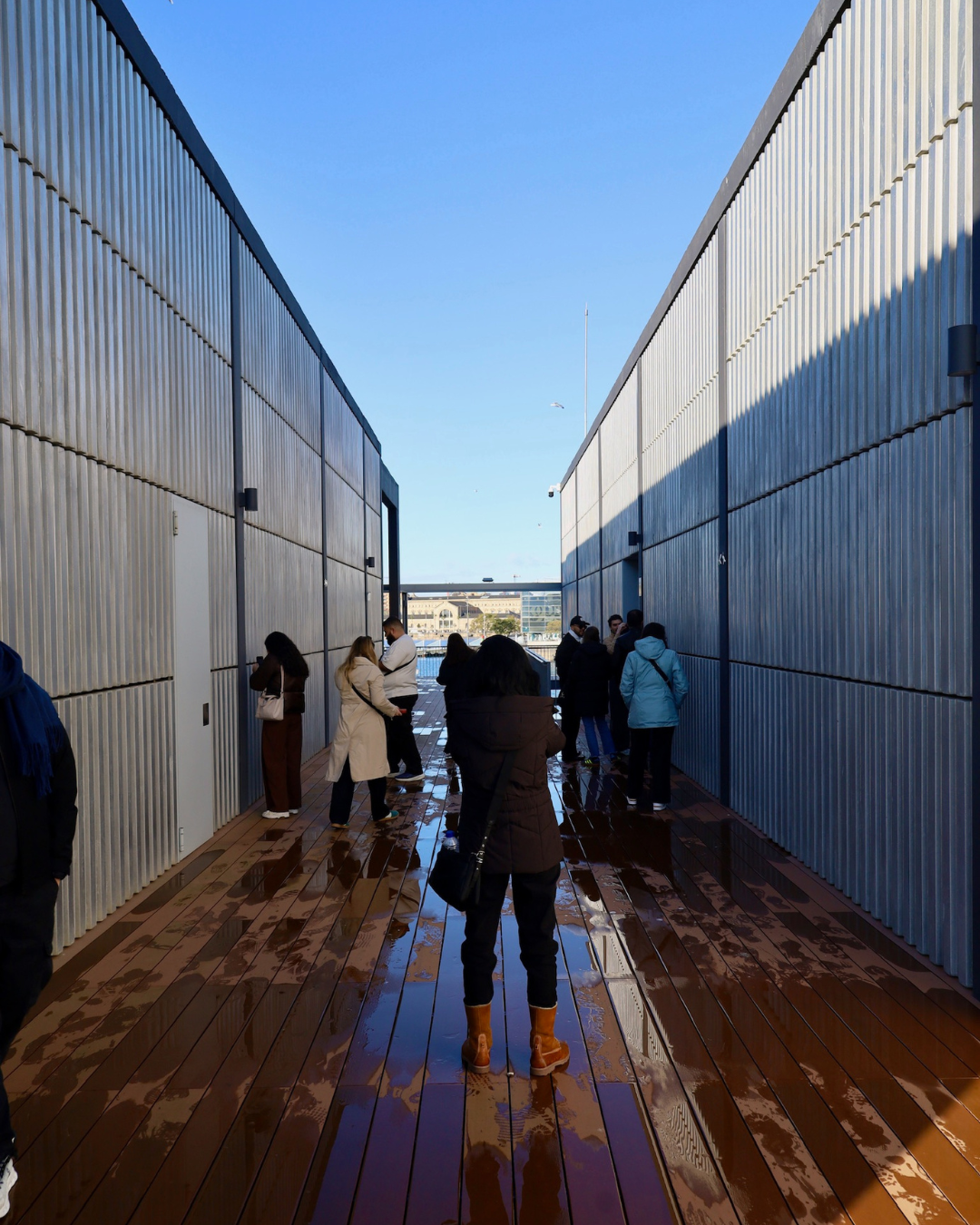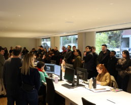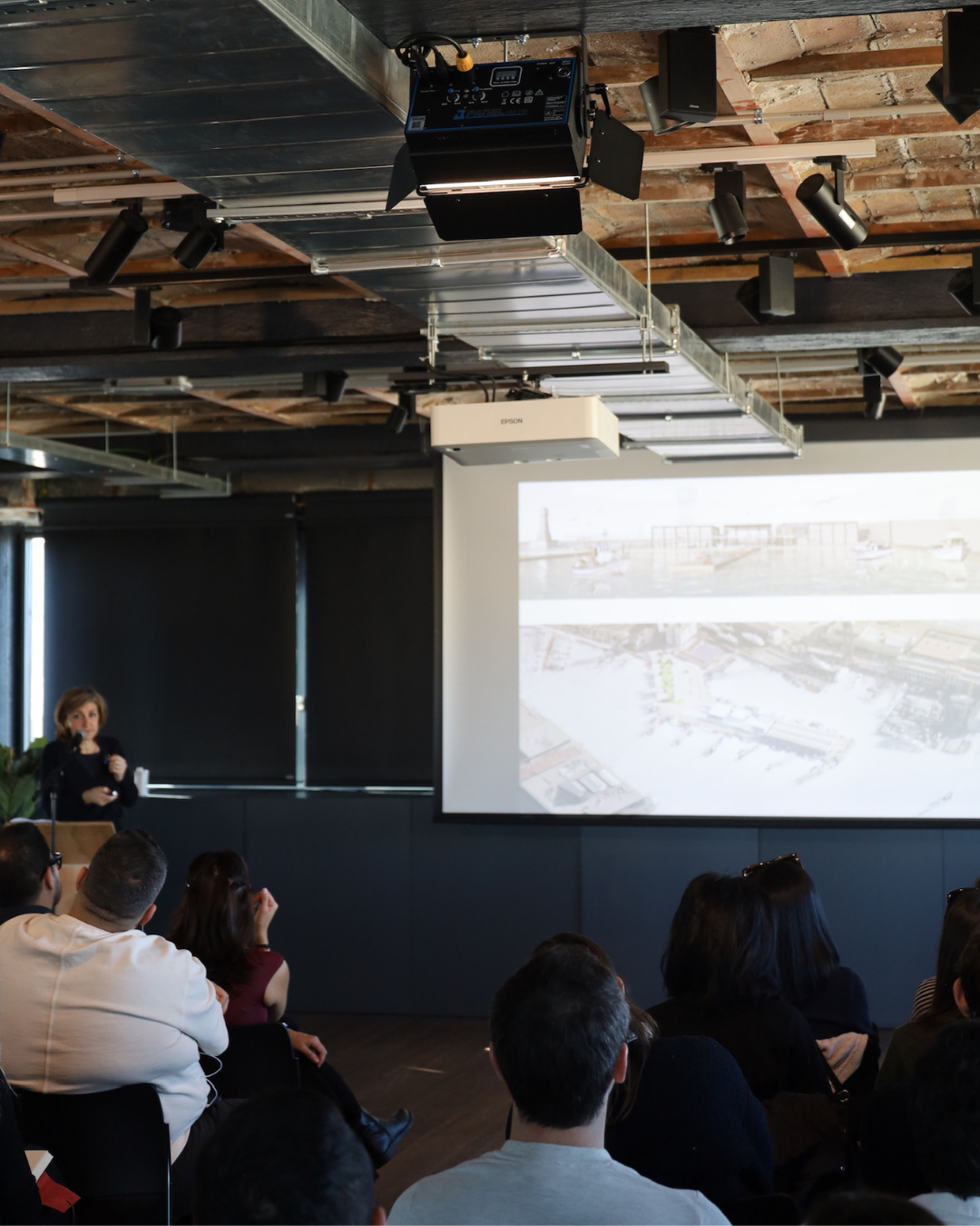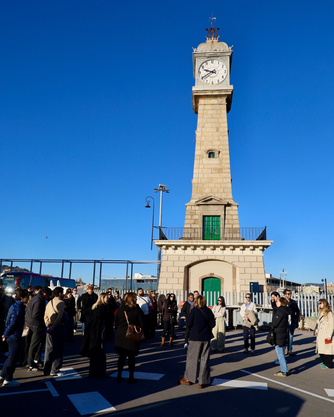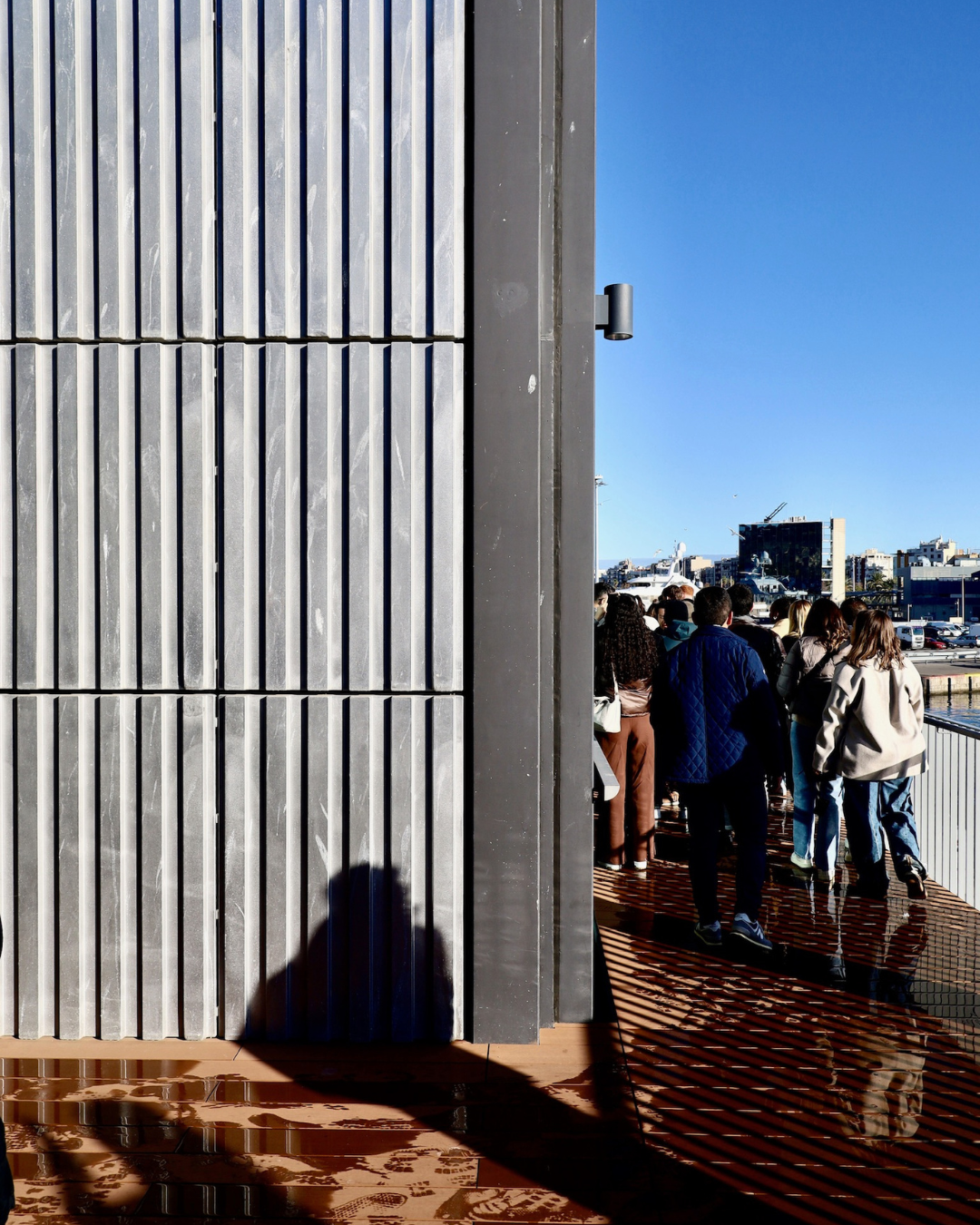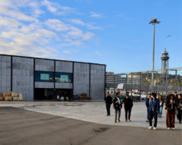 La mañana siguiente los alumnos tuvieron una visita guiada al Moll de Pescadors, uno de los proyectos más premiados de OAB · Ferrater. Acompañados por Lucía Ferrater y Núria Ayala, los estudiantes recorrieron el proyecto entendiendo su complejidad urbana, técnica y constructiva. Fue especialmente interesante descubrir cómo un proyecto de esta escala se desarrolla a lo largo del tiempo y cómo dialoga con un entorno tan sensible como el puerto de Barcelona.