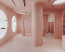 If you’re looking for something more experimental and contemporary, the Moco Concept Store, created by the studio Six n Five, is a must. Here, design blends with digital art, installations and futuristic furniture, turning the store into a small parallel universe within the city, inspired by the artists of the Moco Museum. Also worth a visit is the Gimaguas store, designed by TEST, which takes a more artisanal, Mediterranean approach, with an interior clad in petrified concrete fabric that creates soft forms and an atmosphere combining freshness with character.