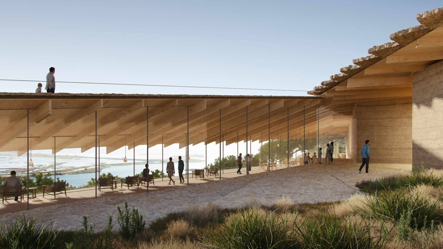 As in all their projects, the studio seeks to echo the identity of the place in terms of the use of materials and tones, and in this way, he resorts to limestone to generate a set of roofs which evoke the characteristic rock formations. of the area, integrating into the territory to cause the minimum impact on it.