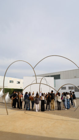 During the opening ceremony, the new students toured Espai Alfaro, a multidisciplinary space where most of the academic program takes place, except for trips and external visits. During this visit, they discovered the Alfaro Hofmann Collection, a carefully curated selection of industrial design pieces—mainly household appliances from different periods—which encouraged reflection on the evolution of the domestic environment and the transformation of kitchen spaces. They also explored the work of sculptor Andreu Alfaro, both his monumental outdoor pieces and the smaller works from his former workshop, thus establishing a tangible link between art and architecture.